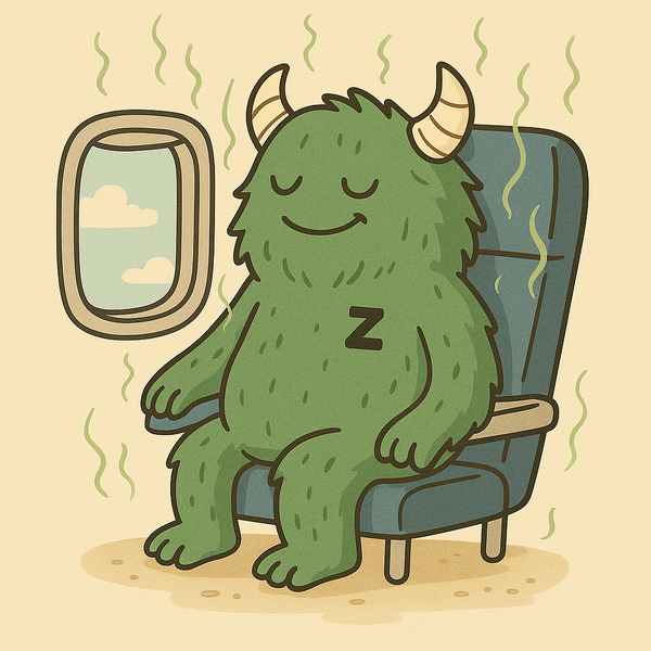 He tried everything - deodorant, showering in airport sinks, stuffing mints in his socks. Nothing helped. He just wanted to share the joy of travel... without the stench of it.