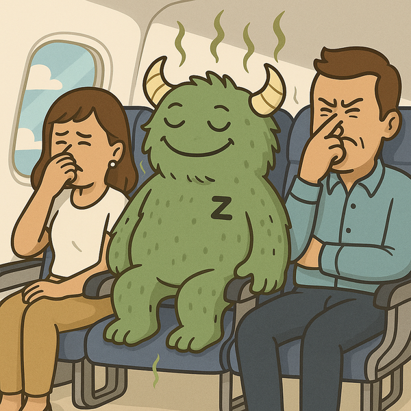 He tried everything - deodorant, showering in airport sinks, stuffing mints in his socks. Nothing helped. He just wanted to share the joy of travel... without the stench of it.